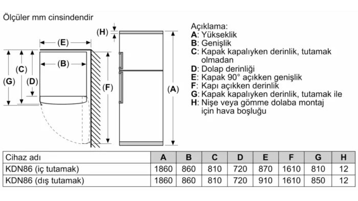 Ürün Ölçüleri (Yükseklik x Genişlik x Derinlik): 1860 x 860 x 800 mm